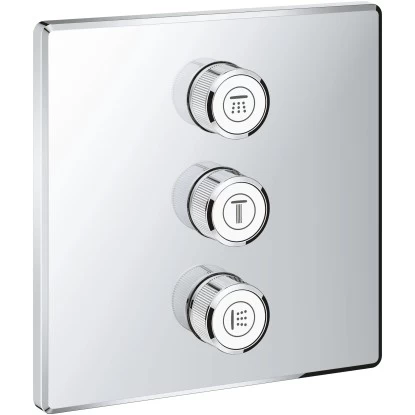 Das SmartControl Reglerset bietet Ihnen ein flexibles Duscherlebnis. Sie haben die Wahl über mehrere Strahl- und Volumeneinstellungen. Wassermenge und gewünschte Strahlquelle lassen sich so einfach und individuell bestimmen. Dank Grohe EasyLogic Kennzeichnungen ist der multifunktionelle Regler auch für Gäste und Kinder leicht zu verstehen. Die Symbole lassen sich je nach Funktionen des Duschsystems auswechseln. Darüber hinaus können Sie die einzelnen Symbole gleichzeitig betätigen, um ein einzigartiges Duscherlebnis zu schaffen. Die prägnante, eckige Wandrosette verdeckt unansehnliche Befestigungselemente und verdeckt zudem Rosetten- und Schaftabdichtung. So wird das eindrucksvolle Design des Reglers nicht unterbrochen.