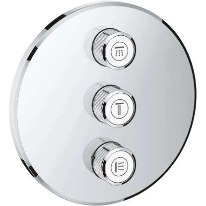 Das SmartControl Reglerset bietet Ihnen ein flexibles Duscherlebnis. Sie haben die Wahl über mehrere Strahl und Volumeneinstellungen. Wassermenge und gewünschte Strahlquelle lassen sich so einfach und individuell bestimmen. Dank Grohe EasyLogic Kennzeichnungen ist der multifunktionelle Regler auch für Gäste und Kinder leicht zu verstehen. Die Symbole können Sie je nach Funktionen des Duschsystems auswechseln. Darüber hinaus können Sie die einzelnen Symbole gleichzeitig betätigen, um ein einzigartiges Duscherlebnis zu schaffen. Die prägnante, runde Wandrosette verdeckt unansehnliche Befestigungselemente und verdeckt zudem Rosetten- und Schaftabdichtung. So wird das eindrucksvolle Design des Reglers nicht unterbrochen.