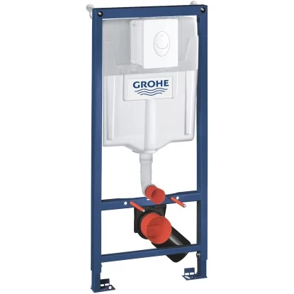 Für die Installation eines Wand-WCs, benötigen Sie einen sicheren, zweckmäßigen und belastbaren Rahmen, der sich problemlos installieren lässt. Dies bietet das Grohe Rapid SL 3-in-1-Montageset für Wand-WCs. Der Stahlrahmen ist für eine Belastung von über 400 kg und somit für höchste Stabilität zertifiziert und lässt sich im Handumdrehen vor einer stabilen Wand oder in einer Ständerwand montieren.