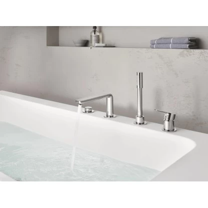 Schaffen Sie sich Ihr eigenes Spa in Ihrem Badezimmer. Mit der 4-Loch Wannenarmatur von Grohe ist immer für ein entspanntes Bad gesorgt. Über die Umstellung können Sie einfach zwischen Wanneneinlauf und Stabbrause wechseln.