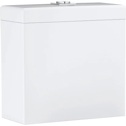 Der Grohe Aufsatzspülkasten Cube Keramik in glänzendem Weiß verfügt über eine besondere Formgebung, die Ihr Badezimmer in eine kubistisch inspirierte Umgebung verwandelt. Der Spülkasten besteht aus Glasporzellan und ist äußerst widerstandsfähig.