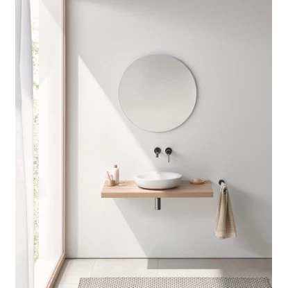 Die gefühlvoll geschwungene, runde Form der Keramik vermittelt ein Gefühl von Futurismus, das in Badezimmern selten zu finden ist. Das Waschbecken wurde absichtlich so konzipiert, dass mit Armaturen der Kollektionen Lineare, Essence oder Plus der optimale Look entsteht, der zu jeder Badezimmerausstattung passt.