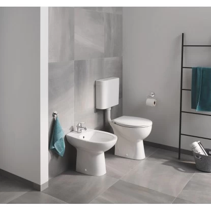 Das Grohe Bau Keramik Stand-WC überzeugt durch sein klassisches Design und ist die perfekte Ergänzung für jede Badezimmereinrichtung. Es ist aus alpinweißem Glasporzellan gefertigt, das Bakterien keine Chance gibt. Das Material ist pflegeleicht und ermöglicht außerdem eine effizientere Spülung.