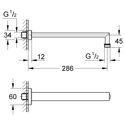 Der Grohe Brausearm Rainshower eckig hat eine Ausladung von 286 mm und ein Anschlussgewinde von 1/2″. Durch die StarLight Chromoberfläche ist dieser Brausearm besonders robust und widerstandsfähig gegen Kratzer und Abnutzung.