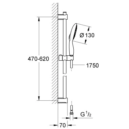 Das Grohe Brausestangen-Set Vitalio Rain 130 besteht aus der Handbrause Vitalio Rain 130, der 600 mm Brausestange Vitalio Universal und dem Brauseschlauch VitalioFlex mit einer Länge von 175 cm.