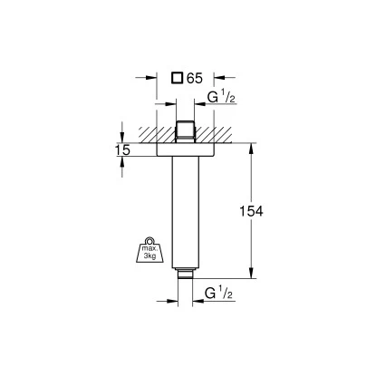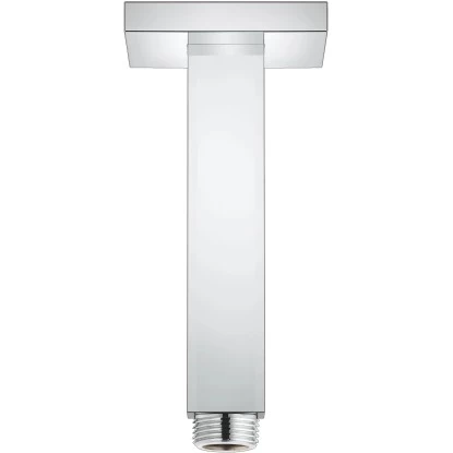 Der Deckenauslass überzeugt vor allem mit seinem modernen Design und einer eckigen Formensprache. Die Länge des Auslaufes beträgt 154 mm, so dass ihnen genug Platz unter der Dusche bleibt. Für ein einheitlicheres Gesamtbild sorgt die eckige Metallrosette. Durch Sie werden unansehnliche Befestigungselemente verdeckt und das gleichmäßige Design wird nicht unterbrochen. Das Anschlussgewinde beträgt 1/2″ und ist für diverse Grohe Rainshower Duschköpfe geeignet.