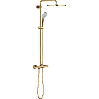 Das Euphoria 310 XXL Duschsystem mit Thermostatbatterie für die Wandmontage verfügt über eine Strahl-Handbrause in der Farbvariante Cool Sunrise. Der Duscharm der Kopfbrause ist um 180° schwenkbar und sorgt somit für mehr Flexibilität.