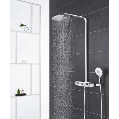 Das Grohe Duschsystem Rainshower SmartControl wertet Ihre Dusche elegant auf. Die hochwertige Grohe StarLight Oberfläche in Chrom überzeugt mit einer sanften Linienführung und passt sich harmonisch nahezu jedem Badezimmer an. Die StarLight Oberfläche sieht nicht nur besonders gut aus, sondern ist auch sehr resistent gegenüber Kratzern und von daher sehr pflegeleicht. Wischen Sie die Oberfläche einfach mit einem Tuch ab und schon erstrahlt das Chrom wieder in gewohntem Glanz.