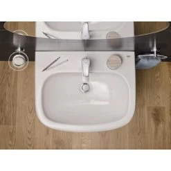 Eine moderne Lebensweise muss nicht an der Tür zum Badezimmer enden. Das Waschbecken bringt einen unverwechselbaren und zeitlosen Look in Ihr Bad. Die glänzende Oberfläche wirkt insbesondere mit Armaturen der Grohe Kollektionen Eurocube, Lineare, Allure und Allure Brilliant äußerst harmonisch.