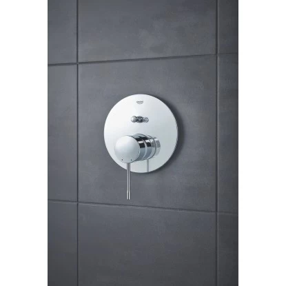 Die Grohe Essence Einhand-Wannenbatterie verfügt über eine haptische Regelung zum mühelosen Umschalten zwischen 2 Dusch- und Wannenfunktionen.