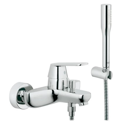 Die Eurosmart Cosmopolitan Einhand-Wannenbatterie überzeugt durch dynamisch geneigte Linien und funktionales Design und ermöglicht eine automatische Umstellung zwischen Wanne und Brause. Die Batterie eignet sich für die Wandmontage.