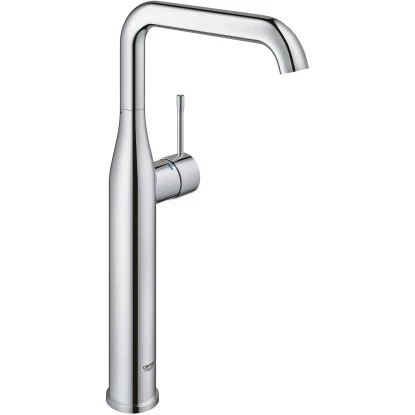 Die Grohe Essence Waschtischarmatur eignet sich für freistehende Waschtische. Der extra hohe Auslauf mit variablem 360° Schwenkbereich und der verstellbare Mousseur bieten viel Freiraum beim Haarewaschen oder Befüllen größerer Behälter.