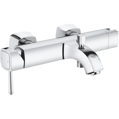 Die Grandera Einhand-Wannenbatterie verfügt über eine integrierte Handbrausehalterung, einen Auslauf mit Mousseur und eine automatische Umstellung zwischen Wanne/Brause. Sie eignet sich für die Wandmontage.
