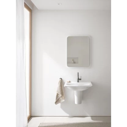 Die alpinweiße Grohe Halbsäule Essence deckt den Siphon und die Eckventile Ihres Waschtischs formschön ab und erzeugt eine kompakte Optik. Ein besonders harmonisches Aussehen ergibt sich in Kombination mit Waschbecken der Essence Keramik Kollektion.