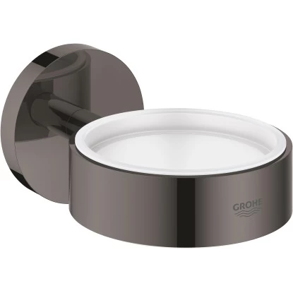 Der Grohe Essentials Halter in der Farbvariante Hard Graphite vereint Stil und Funktionalität. Er lässt sich mit dem Grohe Kristallglas, der Seifenschale und dem Seifenspender kombinieren.