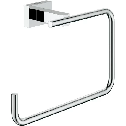 Der Handtuchring gehört zu der Serie Essentials Cube. Er besteht aus Metall und hat eine GROHE StarLight Chromoberfläche. Zudem hat er eine verdeckte Befestigung.