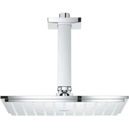 Die Kopfbrause mit großem, viereckigem Auslauf (230 mm Ø) hat einen breiten Strahl der bei Ihnen Zuhause für besondere Duschmomente sorgt. Die Regendusche bereitet durch den eleganten Deckenauslass das Gefühl eines echten Sommerregens, der angenehm auf Ihre Haut prasselt. Dank Grohe DreamSpray wird das Wasser gleichmäßig verteilt, so wird für ein perfektes Strahlbild gesorgt. Dabei lässt sich die Brause besonders leicht von Kalk befreien. Durch das Antikalk-System SpeedClean lassen sich Kalkablagerungen an den Düsen einfach mit dem Finger abwischen.