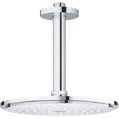 Die Kopfbrause mit großem 210 mm Ø Auslauf hat einen breiten Rain-Strahl der bei Ihnen Zuhause für besondere Duschmomente sorgt. Die Regendusche bereitet durch den eleganten Deckenauslass das Gefühl eines echten Sommerregens, der angenehm auf Ihre Haut prasselt. Dank Grohe DreamSpray wird das Wasser gleichmäßig verteilt, so wird für ein perfektes Strahlbild gesorgt. Dabei lässt sich die Brause besonders leicht von Kalk entfernen. Durch das Antikalk-System SpeedClean lassen sich Kalkablagerungen an den Düsen einfach mit dem Finger abwischen. Durch das Grohe DropStop-System wird das Nachtropfen des Brausekopfs verhindert.