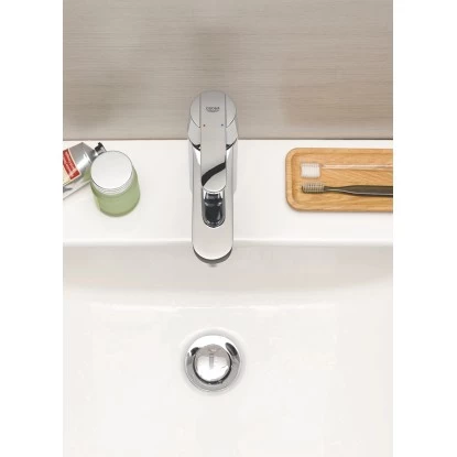 Mit der Grohe QuickFix Einhand-Waschbeckenarmatur Get M trifft führendes minimalistisches Design auf bewährte und erprobte Grohe Technologie. Mit der klaren Linienführung und dem konischen Körper ist die stylische Grohe Get Einhand-Spültisch- bzw. Waschtischarmatur mit mittelhohem Auslauf und praktischer Zugstangen-Ablaufgarnitur ein Blickfang in jedem modernen Badezimmer. Ausgestattet mit Grohe Technologie und deutscher Technik ist die Bedienung dieser intelligenten Armatur eine wahre Freude.