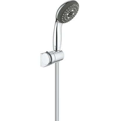 Das Grohe QuickFix Handbrause-Set Vitalio Start 100 besteht aus der Handbrause Vitalio Start 100 mit 3 Strahlarten, der verstellbaren Wandhalterung Vitalio Universal und dem Brauseschlauch Vitalioflex Trend mit einer Länge von 175 cm.