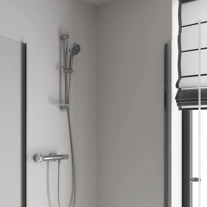 Das Grohe QuickFix Precision Feel Thermostat-Duschset DN 15 für unterschiedlichste Ansprüche an die eigene Badezimmerausstattung besteht aus der technisch fortschrittlichen, leistungsstarken und für Sicherheit sorgenden Precision Feel Thermostat-Brausebatterie 13 mm (1/2″) und der beliebten, belebenden und vielseitigen Vitalio Comfort 100 Brausegarnitur mit 3 Strahlarten und einer Anbauhöhe von 600 mm.
