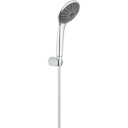 Das Grohe QuickFix Vitalio Joy 110 Mono Wandhalter-Set besteht aus einer Handbrause, einem Wandbrausehalter und einem Brauseschlauch.