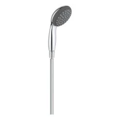 Die Grohe QuickFix Brausegarnitur Vitalio Start 100 besteht aus einer Handbrause mit einer Strahlart und dem Brauseschlauch VitalioFix Trend. Der Brauseschlauch ist 150 cm lang und hat die Anschlussmaße 1/2″ x 1/2″. Die Brause verfügt über den Durchflusskonstanthalter Grohe EcoJoy, sodass 5,7 l/min durch den Schlauch fließen. Die spezielle StarLight Oberflächenbeschichtung sorgt durch erhöhte Oberflächenhärte und Kratzfestigkeit dafür, dass die Oberfläche robuster ist und auch nach langer Zeit noch hochwertig aussieht. Die Düsen der Handbrause sind zudem mit einem Antikalk-System ausgestattet und können mit einem Wisch von Kalkablagerungen befreit werden. Die innenliegende Wasserführung ist separat und verhindert den Kontakt mit Blei und Nickel. Die Brausegarnitur ist für Durchlauferhitzer geeignet. Der ShockProof Silikonring schließlich schützt die Brause vor Beschädigungen durch Herunterfallen.