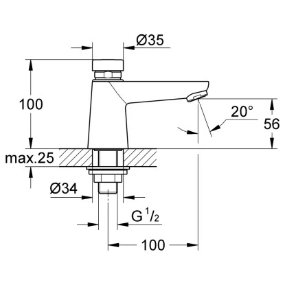 Das Euroeco CT Selbstschluss-Standventil eignet sich für kaltes oder vorgemischtes Wasser. Die Markierung auf dem Druckhebel ist blau/rot. Die Laufzeit kann zwischen 7, 15 oder 30 Sekunden eingestellt werden (druckabhängig). Es ist bei 0,5 – 6,0 bar Fließdruck einsetzbar und der Mindestdruck beträgt 1,0 bar.