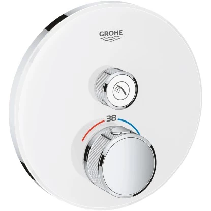 Das Grohe Thermostat verfügt über eine hochwertige Grohe StarLight Oberfläche aus Acrylglas in Moon White. Die StarLight Oberfläche sieht nicht nur besonders gut aus, sondern ist auch sehr resistent gegenüber Kratzern und von daher sehr pflegeleicht. Wischen Sie die Oberfläche einfach mit einem Tuch ab und schon erstrahlt das Moon White wieder in gewohntem Glanz. Die Armatur überzeugt vor allem mit modernem Design und multifunktioneller Einsatzbarkeit.