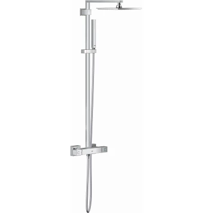 Das Grohe Überkopfbrause-Set Euphoria Cube 230, mit Thermostat, sorgt für pures Wellness-Duschvergnügen, unter sanftem Sommerregen. Mit seinem angenehmen und großflächigen Rain-Strahl und dem kräftigen Normal-Strahl, lässt es Ihren Stress, nach einem langen Tag, einfach von Ihnen abperlen. Sein Thermostat bringt, mit der Grohe TurboStat® Technologie, das Wasser sofort auf die gewünschte Temperatur und hält sie konstant. Dabei schützt die SafeStop Taste, Sie und Ihre Kinder, vor Temperaturen über 38 °C.