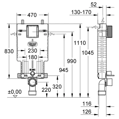 Das Uni-Set für WCs ist der Spülkasten GD 2. Er hat eine kleine Revisionsöffnung und ein schalldämmendes EPS-Modul zum Ummauern. Es eignet sich für die Einzel- oder Reihenmontage von WCs.