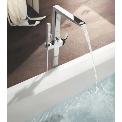 Durch ihre Größe eignet sich die bodenstehende Wannenbatterie perfekt für freistehende Badewannen. Der Auslauf ist mit einem Mousseur ausgestattet, der den Wasserstrahl besonders angenehm aufbereitet. Die Euphoria Cube+ Handbrause mit 1.250 mm langem Metallschlauch vereinfacht das Haare waschen und die allgemeine Körperpflege. Dank Umstellung erfolgt der Wechsel zwischen Brause und Auslauf besonders leicht. Die Grohe DreamSpray Technologie sorgt für einen angenehmen und gleichmäßigen Wasserfluss. Durch die pflegeleichten Grohe SpeedClean Silikondrüsen können Sie Schmutz- und Kalkablagerungen einfach mit dem Finger abwischen.