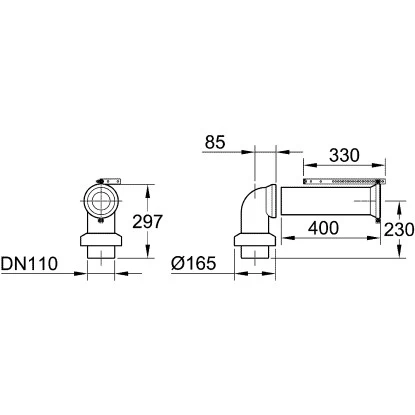 Der WC-Ablaufbogen kann sowohl horizontal als auch vertikal angebracht werden und bietet dadurch mehr Flexibilität beim Einbau eines WCs.